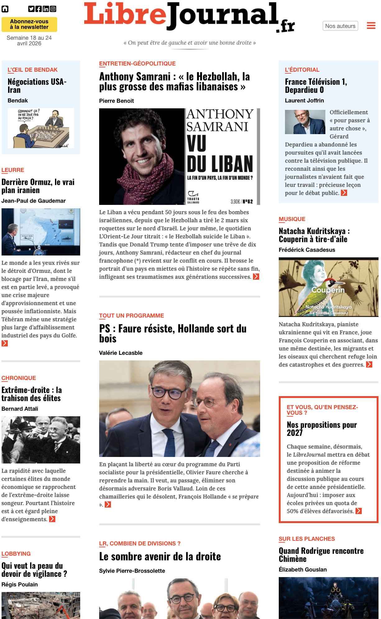 Le Liban a vécu pendant 50 jours sous le feu des bombes israéliennes, depuis que le Hezbollah a tiré le 2 mars six roquettes sur le nord d’Israël. Le jour même, le quotidien L’Orient-Le Jour titrait : « le Hezbollah suicide le Liban ». Tandis que Donald Trump tente d’imposer une trêve de dix jours, Anthony Samrani, rédacteur en chef du journal francophone revient sur le conflit en cours. Il brosse le portrait d’un pays en miettes où l’histoire se répète sans fin, infligeant ses traumatismes aux générations successives. Lire l’article