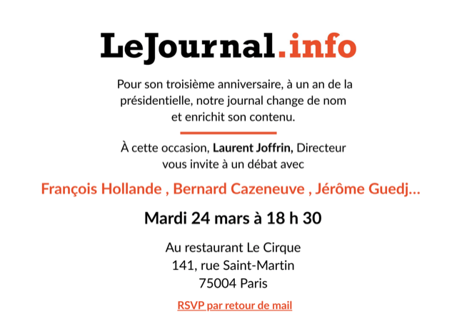 C’est pour eux, républicains et progressistes, que nous publierons une lettre d’information quotidienne, vive, polémique et réactive. Il s’agit de construire un nouvel instrument journalistique, ironique, polémique si nécessaire, capable de manier l’humour et de penser contre lui-même dans la plus grande ouverture. Une lettre qui s’appuie sur l’héritage des Lumières pour penser les défis de l’avenir, une lettre fondée sur la rationalité joyeuse et le souci de la justice, indépendante de tout parti politique, libre de tout préjugé et qui sache penser contre elle-même. Diffusée par mail, cette lettre comprendra l’éditorial de Laurent Joffrin, trois réflexions polémiques sur l’actualité et un accès direct au contenu complet de notre site « Le Journal » .