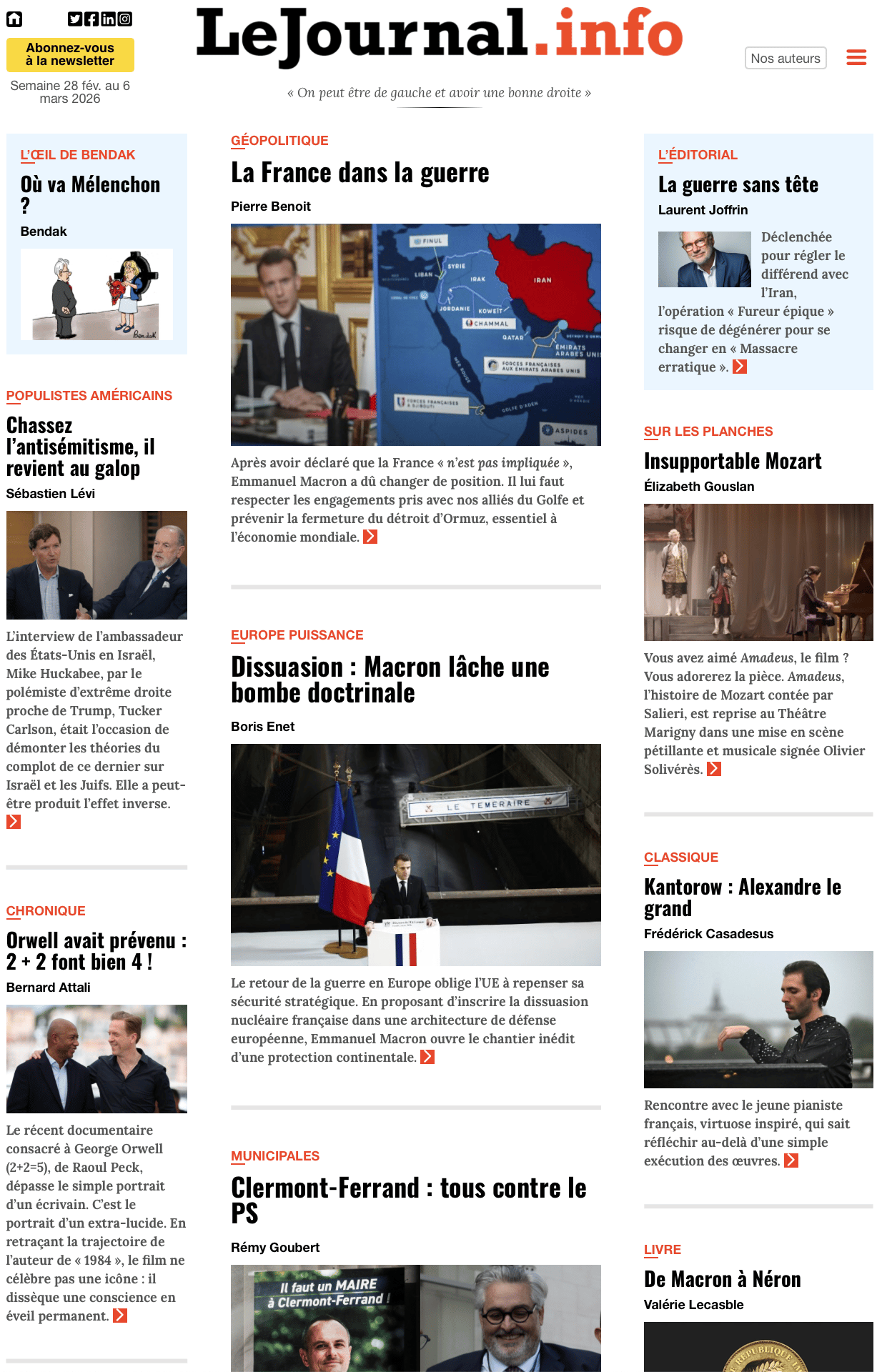 Une dissuasion « avancée », étendue à huit pays européens, et une position logique sur la guerre au Moyen-Orient : en s’adressant aux Français, le président de la République a marqué un point. Ses initiatives visent à remettre la France – et lui-même – au centre de la scène politico-diplomatique. Lire l’article