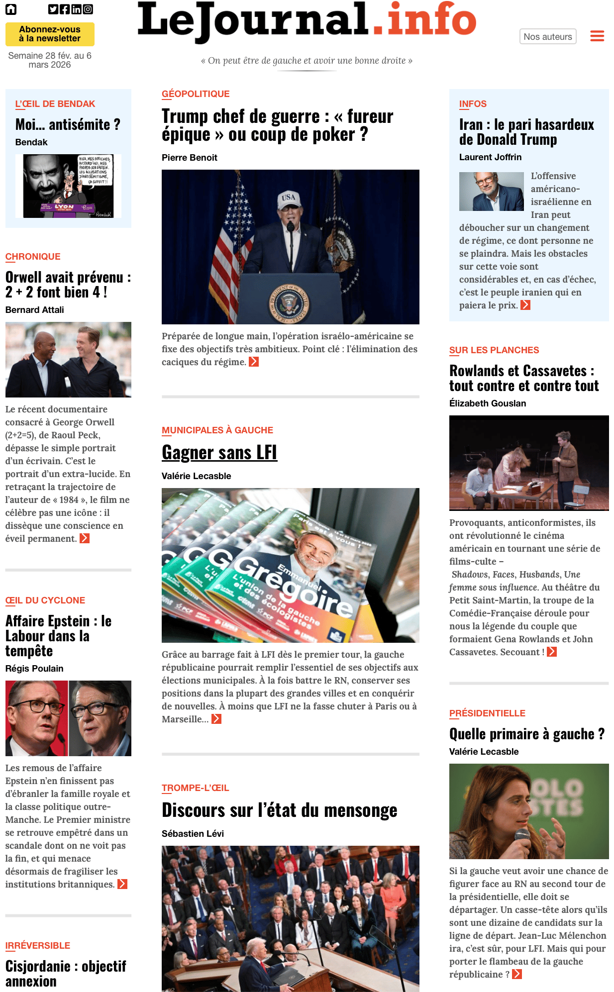 Grâce au barrage fait à LFI dès le premier tour, la gauche républicaine pourrait remplir l’essentiel de ses objectifs aux élections municipales. À la fois battre le RN, conserver ses positions dans la plupart des grandes villes et en conquérir de nouvelles. À moins que LFI ne la fasse chuter à Paris ou à Marseille… Lire l’article