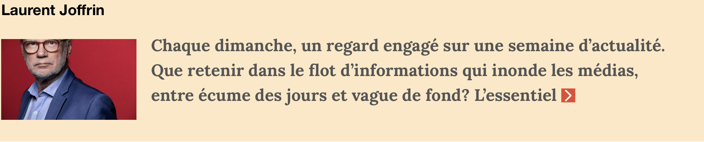 Laurent Joffrin est écrivain et journaliste, auteur d’une lettre politique fondée sur les valeurs de la gauche républicaine, sociale et écologique. Licencié en sciences économiques, diplômé de Sciences Po et du Centre de formation des journalistes, il a dirigé Le Nouvel Observateur et Libération pendant de longues années. Il est l’auteur d’une trentaine d’ouvrages, essais politiques, livres d’histoire et romans policiers historiques, notamment Les Aventures de Donatien Lachance, détective de Napoléon et Les Enquêtes de Nicolas Le Floch, commissaire des Lumières. Il a produit pour France Inter l’émission Diagonales, au croisement de la culture et de la politique et, pour France 5, l’émission Les Détectives de l’Histoire. Il participe régulièrement aux débats politiques des chaînes d’info. Il préside Engagons-Nous, association et thinktank progressiste. Il pratique la voile sur son plan Cornu Pleg Mor ; il a animé longtemps le groupe pop les HeadlessChicken.