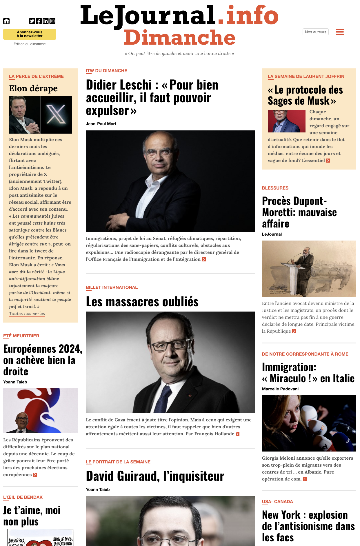 C’est pour eux, républicains et progressistes, que nous publierons une lettre d’information quotidienne, vive, polémique et réactive. Il s’agit de construire un nouvel instrument journalistique, ironique, polémique si nécessaire, capable de manier l’humour et de penser contre lui-même dans la plus grande ouverture. Une lettre qui s’appuie sur l’héritage des Lumières pour penser les défis de l’avenir, une lettre fondée sur la rationalité joyeuse et le souci de la justice, indépendante de tout parti politique, libre de tout préjugé et qui sache penser contre elle-même. Diffusée par mail, cette lettre comprendra l’éditorial de Laurent Joffrin, trois réflexions polémiques sur l’actualité et un accès direct au contenu complet de notre site « Le Journal » .