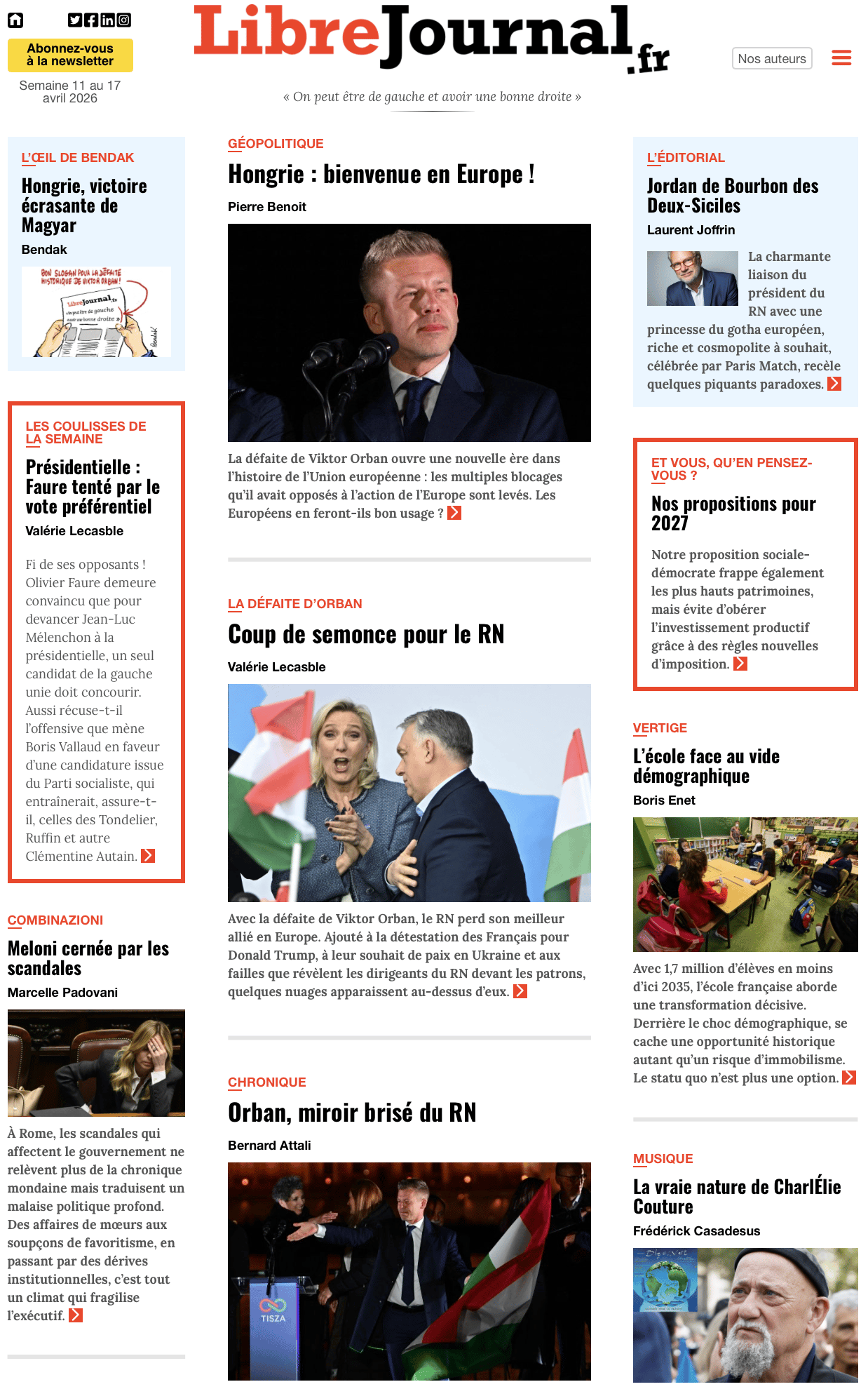 Avec la défaite de Viktor Orban, le RN perd son meilleur allié en Europe. Ajouté à la détestation des Français pour Donald Trump, à leur souhait de paix en Ukraine et aux failles que révèlent les dirigeants du RN devant les patrons, quelques nuages apparaissent au-dessus d’eux. Lire l’article