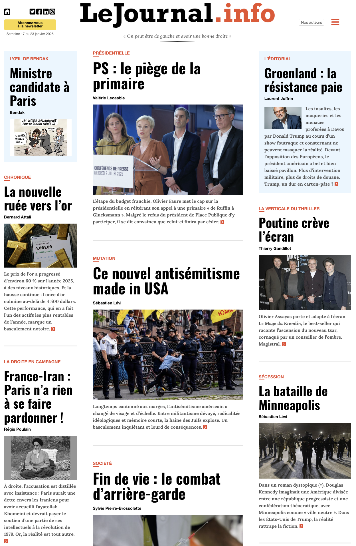 GROENLAND : LA RÉSISTANCE PAIE - Les insultes, les moqueries et les menaces proférées à Davos par Trump au cours d’un show foutraque et consternant ne peuvent masquer la réalité. Devant l’opposition des Européens, le président américain a bel et bien baissé pavillon. Plus d’intervention militaire, plus de droits de douane. Un dur en carton-pâte ?